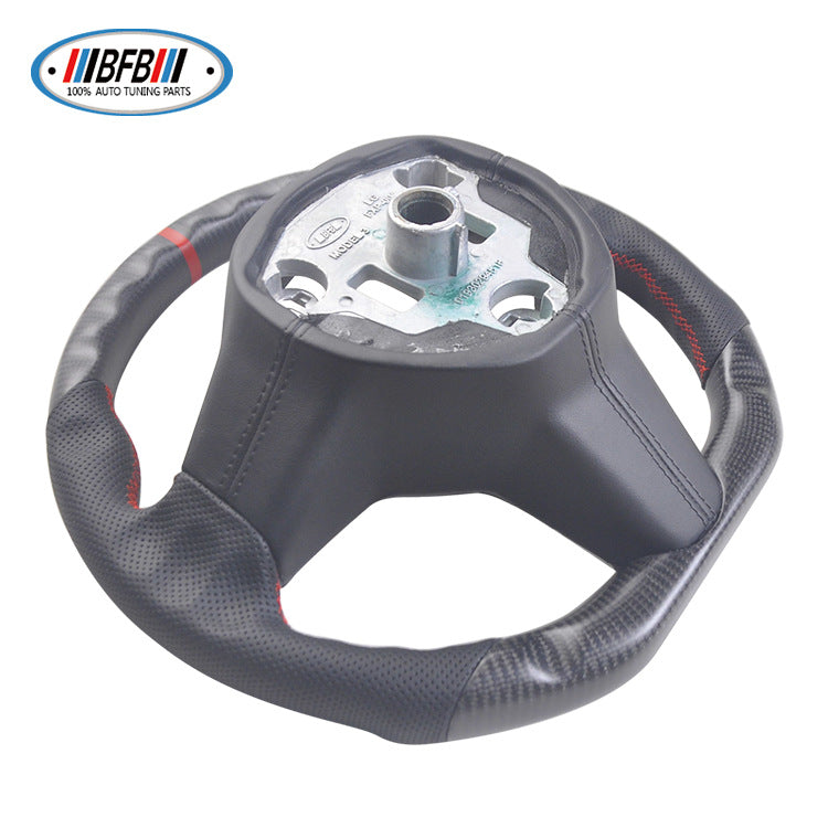 100% Real Carbon Fiber Matte Black Perforated Steering Wheel with Red Stitching and Red Logo – For Tesla Model 3 Y