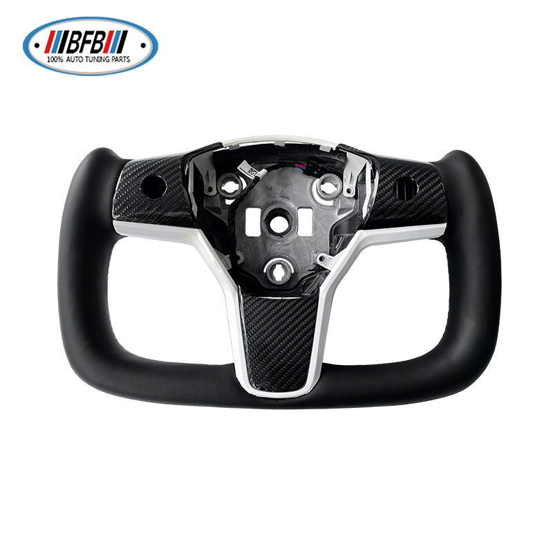 100% Real Carbon Fiber Yoke Steering Wheel – For Tesla Model 3 – Black Alcantara Leather, Carbon Fiber Upgrade