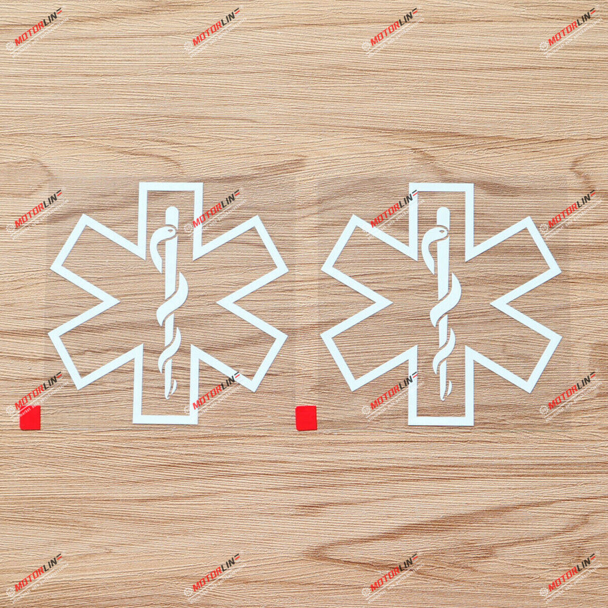 2x White 4” EMT Star of Life Car Laptop Vinyl Decal Sticker Emergency Medical