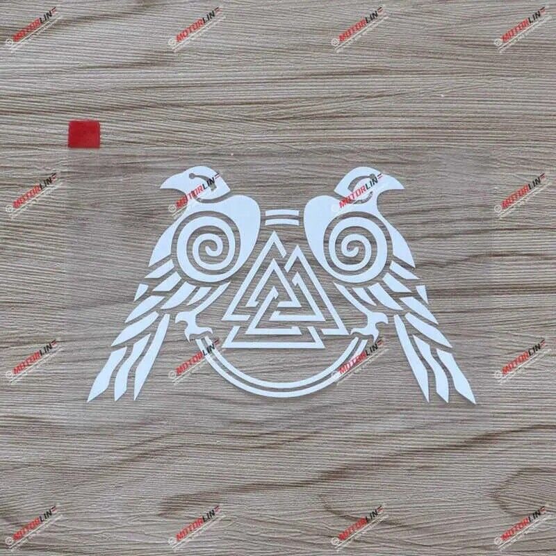 5” White Huginn and Muninn Twin Ravens Valknut Decal Sticker Vinyl Norse Odin