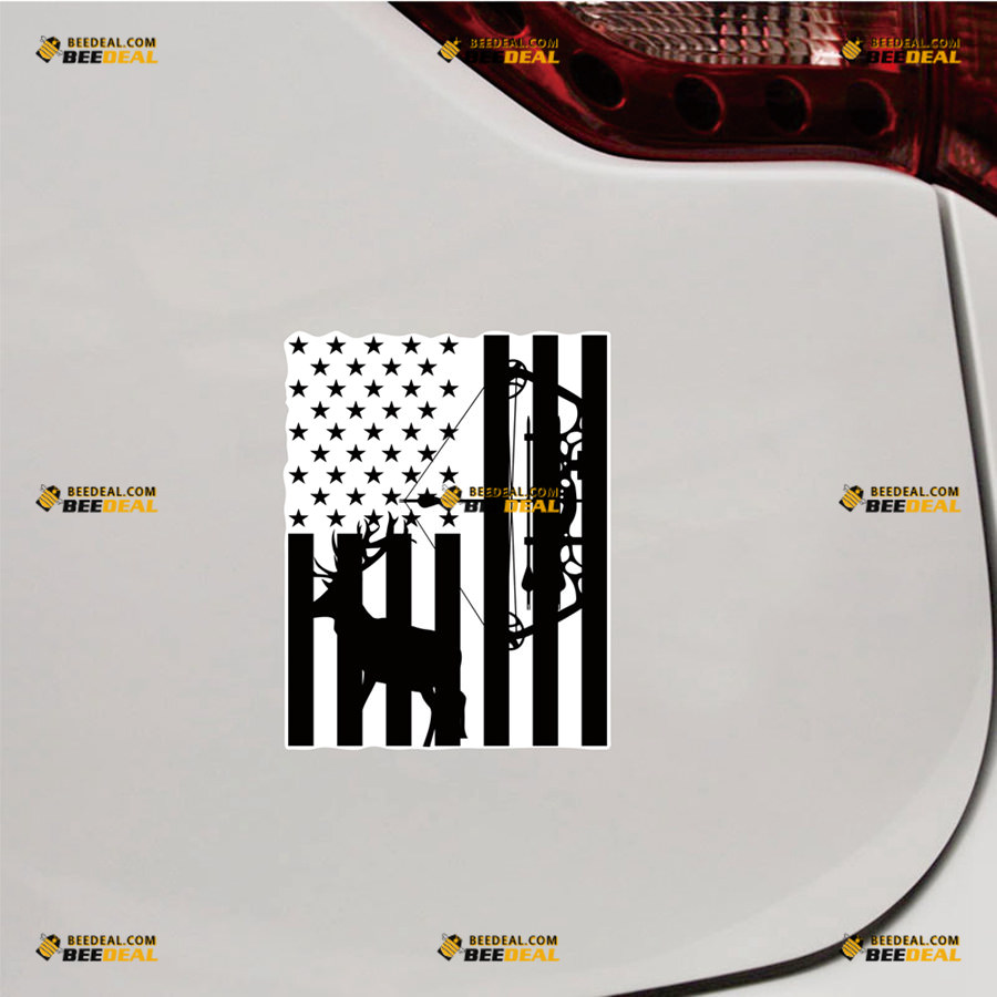 American Flag Sticker Decal Vinyl Deer Hunting Bow Hunter – For Car Truck Bumper Window – Custom, Choose Size, Reflective or Glossy American Flag Sticker Decal Vinyl Deer Hunting Bow Hunter – For Car Truck Bumper Window – Custom, Choose Size, Reflective or Glossy