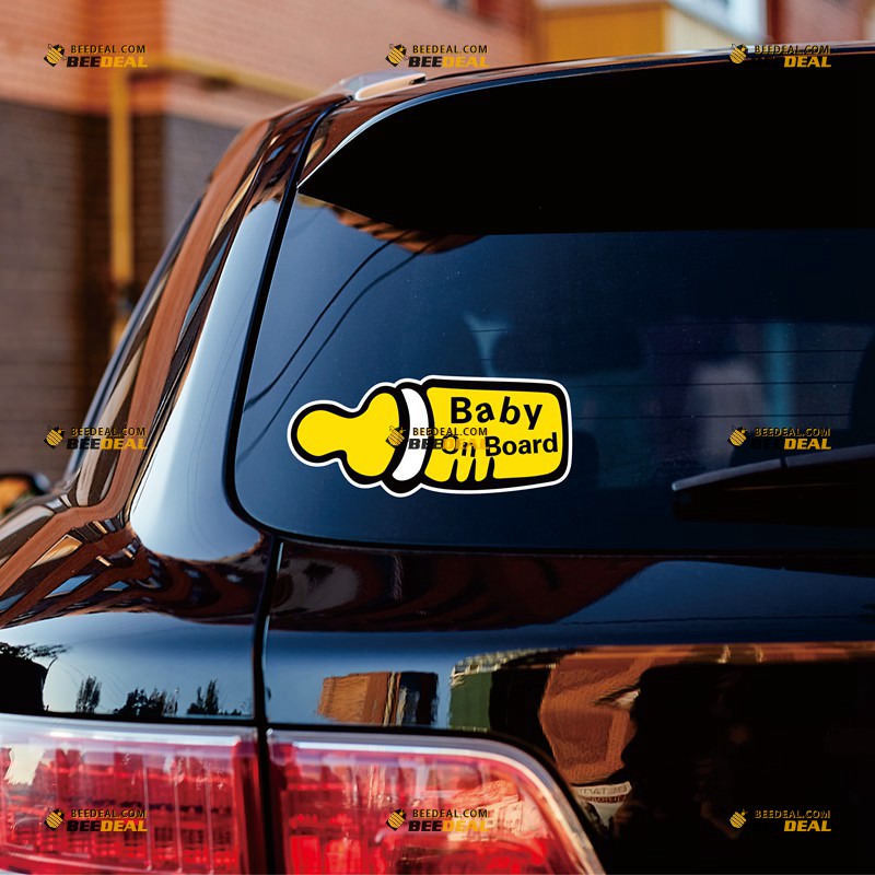 Baby On Board Sticker Decal Vinyl, Baby In Car, Yellow Feeding Bottle – For Car Truck Bumper Window – Custom, Choose Size, Reflective or Glossy 73032234