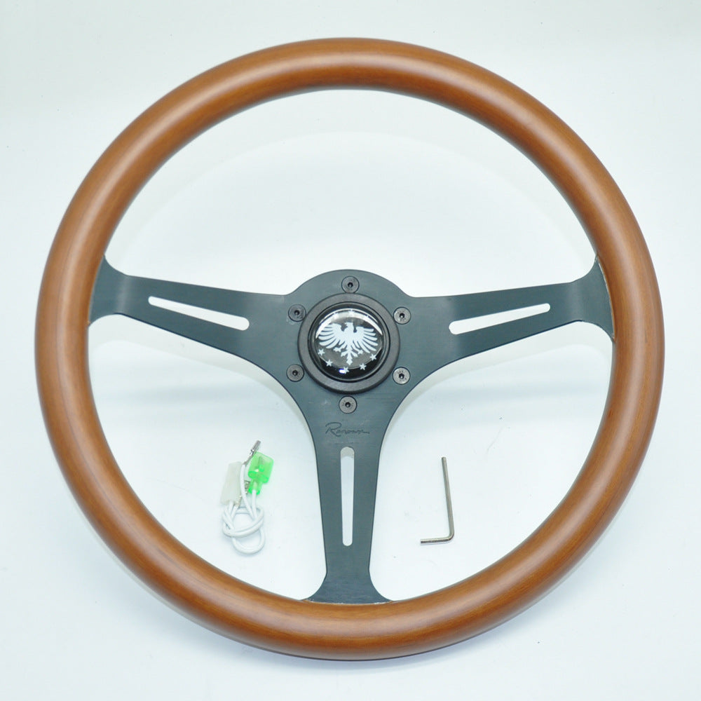 Classic Car Wood Steering Wheel – Brown Matte Spokes 350MM 14 Inch 6 Holes Universal