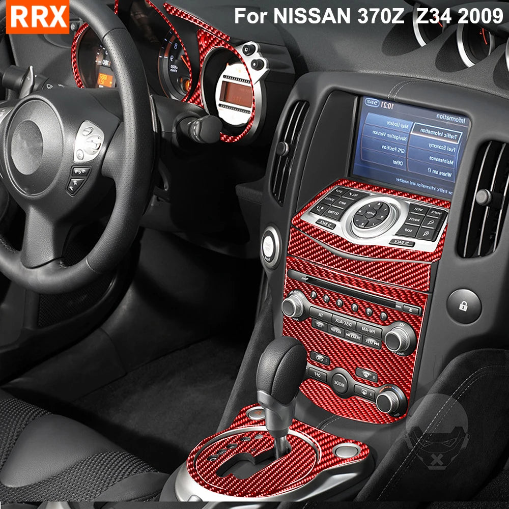 Dashboard Gear Shift Knob Cup Holder Navigation Air Conditioning Panel Real Carbon Fiber Sticker For NISSAN 370Z Z34 2009+