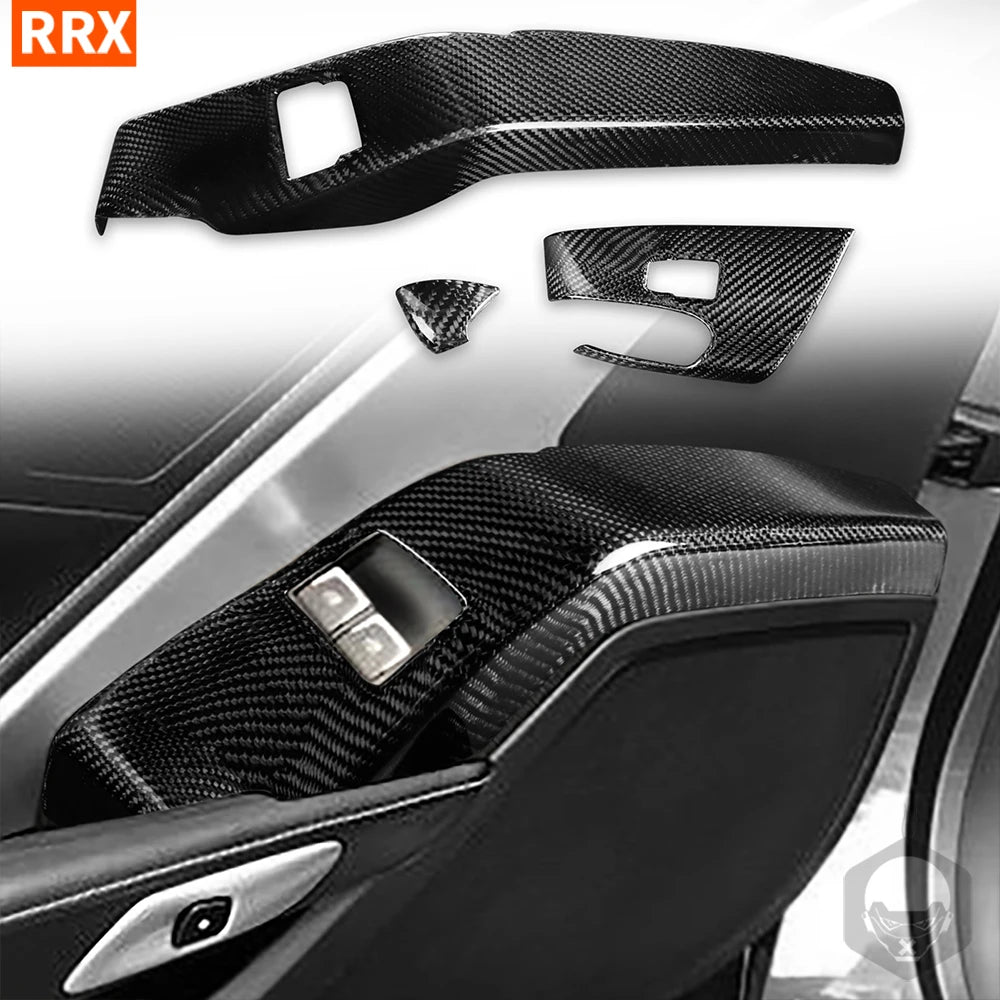 Electric Glass Window Lifting Switch Cover Trim 3Pcs Wet Carbon Fiber For Chevrolet Corvette 2014-2019 Car Interior Refitted