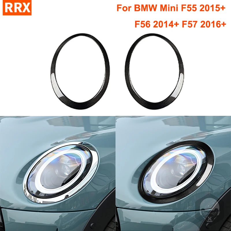 For BMW Mini F55 2015+ F56 2014+ F57 2016+ Front Headlight Headlam Frames Real Carbon Fiber Car Exterior Refit Accessories