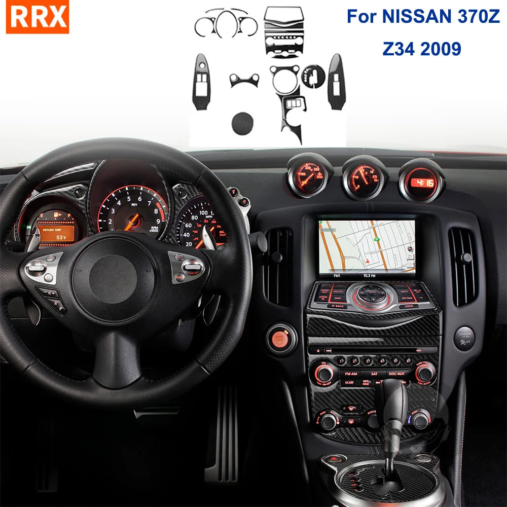 For NISSAN 370Z Z34 2009+ Central Control Gear Shift Knob Air Conditioning Navigation Lifting Real Carbon Fiber Sticker Trim