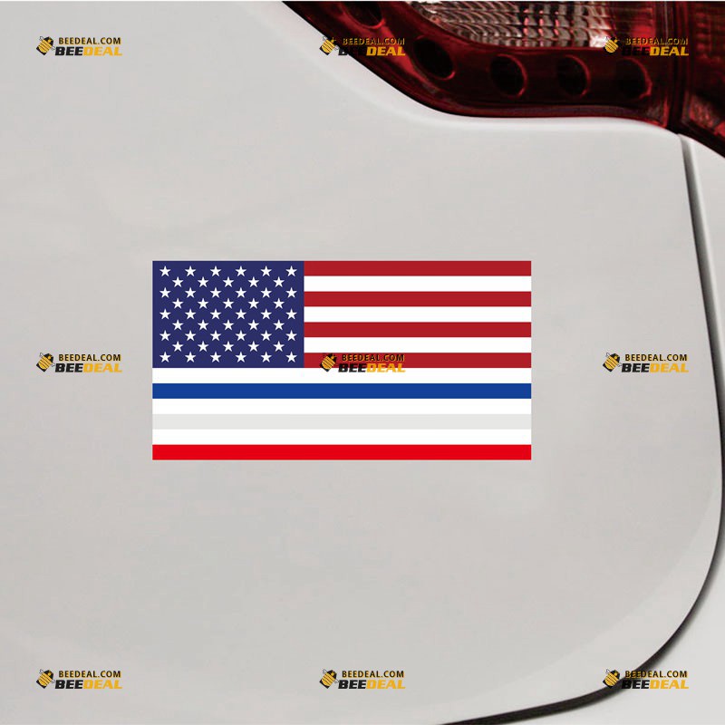 French Flag Sticker Decal Vinyl, Merged American Flag France – For Car Truck Bumper Bike Laptop – Custom, Choose Size, Reflective or Glossy