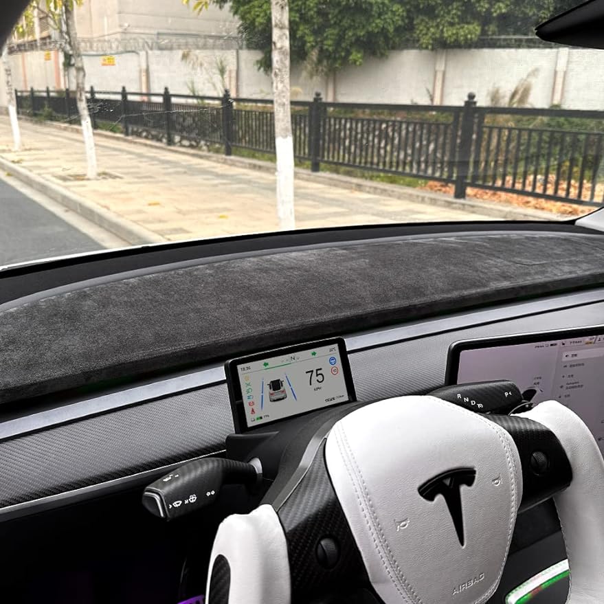 HANSSHOW Dashboard Cover Dash Fit for 2020-2023 Tesla Model Y/ 2017-2023 Model 3 Flannel Nonslip Car Dash Board Mat Sunshade No-Glare-Black