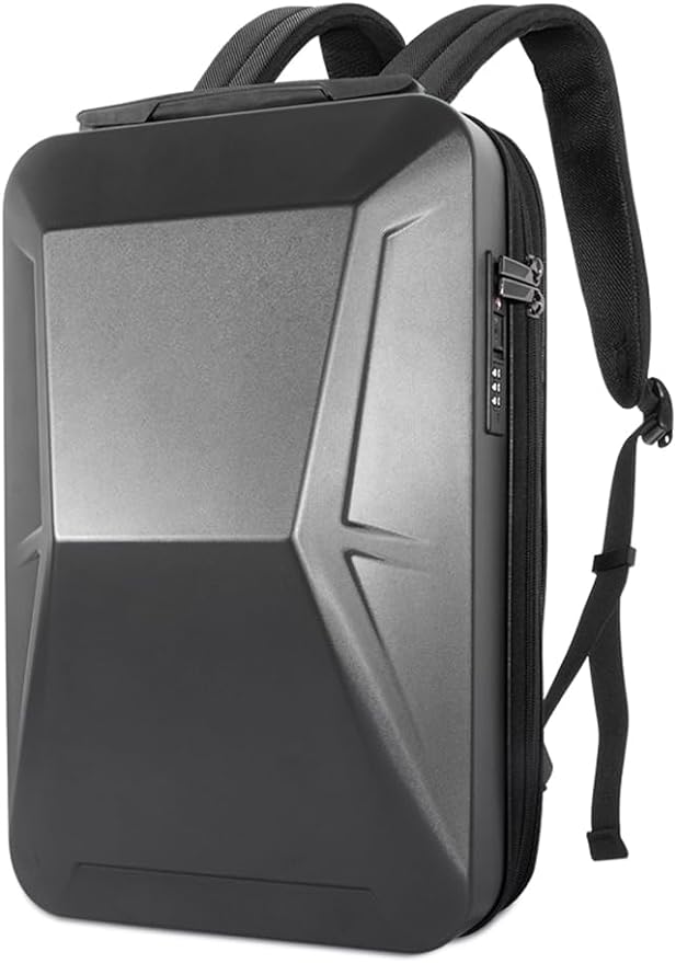 【Hansshow Hard Shell Laptop Backpack】Stay organized and protected with our Hansshow Hard Shell Laptop Backpack. This waterproof backpack is designed with a durable PC&ABS hardshell front that is both scratch-resistant and waterproof. The back is equipped with shock-absorbing pearl cotton to provide comfort and relieve pressure on your shoulders. Our custom lock ensures the safety of your valuable items, and the convenient USB ports allow for easy charging on the go.