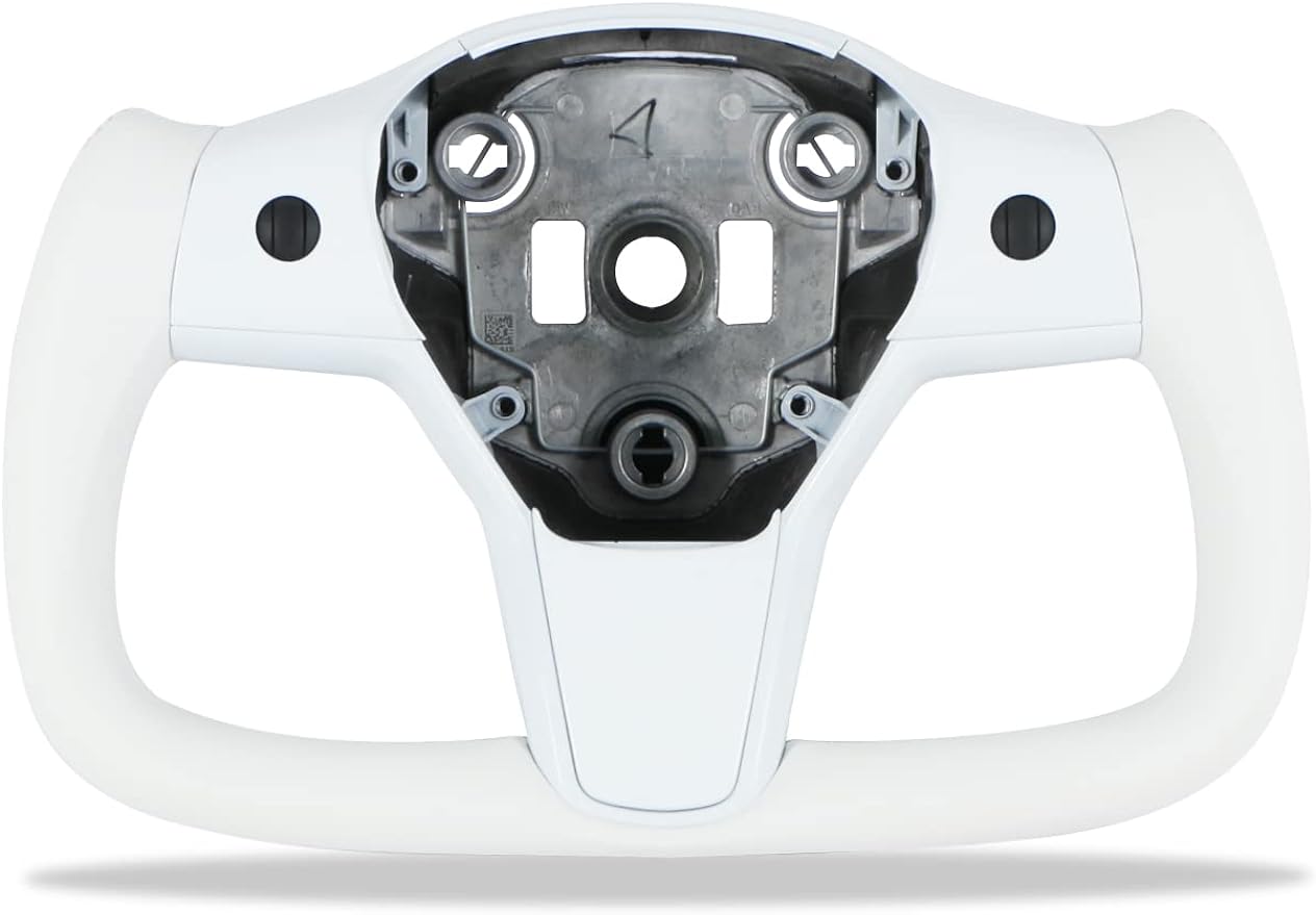 HANSSHOW Yoke Steering Wheel for Tesla Model 3 and Model Y of all Years, Customization, Ellipse, Matte and Glossy Carbon Fiber Trim Panel Decorate Middle and Sides (NO Carbon Fiber, Nappa white)