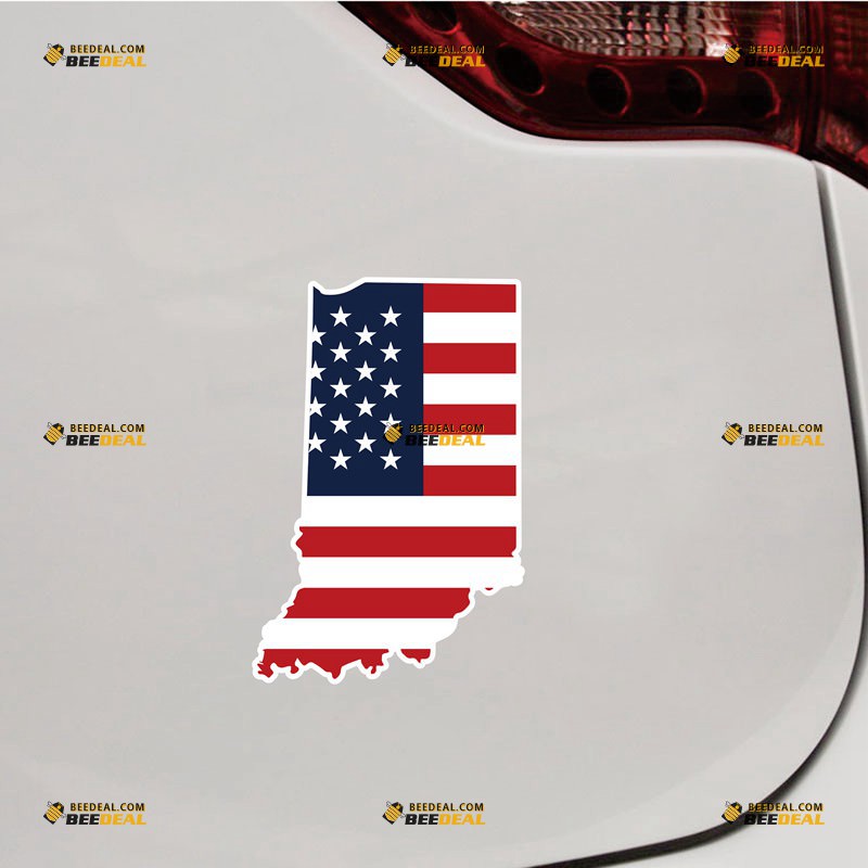 Indiana Sticker Decal Vinyl, IN State Map Outline, American Flag – For Car Truck Bumper Bike Laptop – Custom, Choose Size, Reflective or Glossy