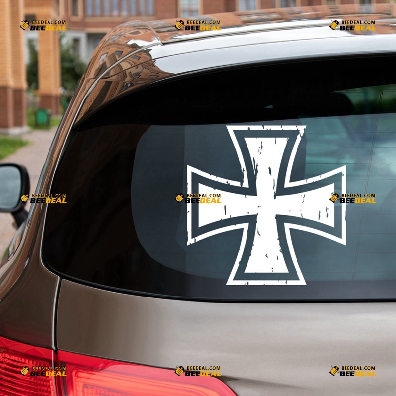 • Iron Cross Sticker Decal Vinyl, German Armed Forces, Wehrmacht Balkenkreuz, Distressed Tattered – For Car Truck Bumper Bike Laptop – Custom, Choose Size Color – Die Cut No Background 63032106