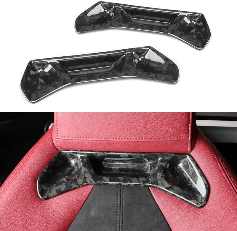 JSWAN Carbon Fiber Car Seat Headrest Cover for Supra A90 GR Seat Back Decoration Panel Cover Sticker, Seat Headrest Cover Fiber Interior Accessories (Bright Forging)