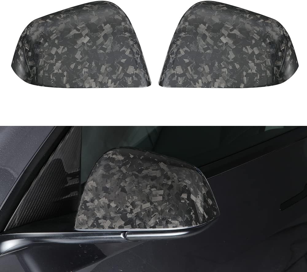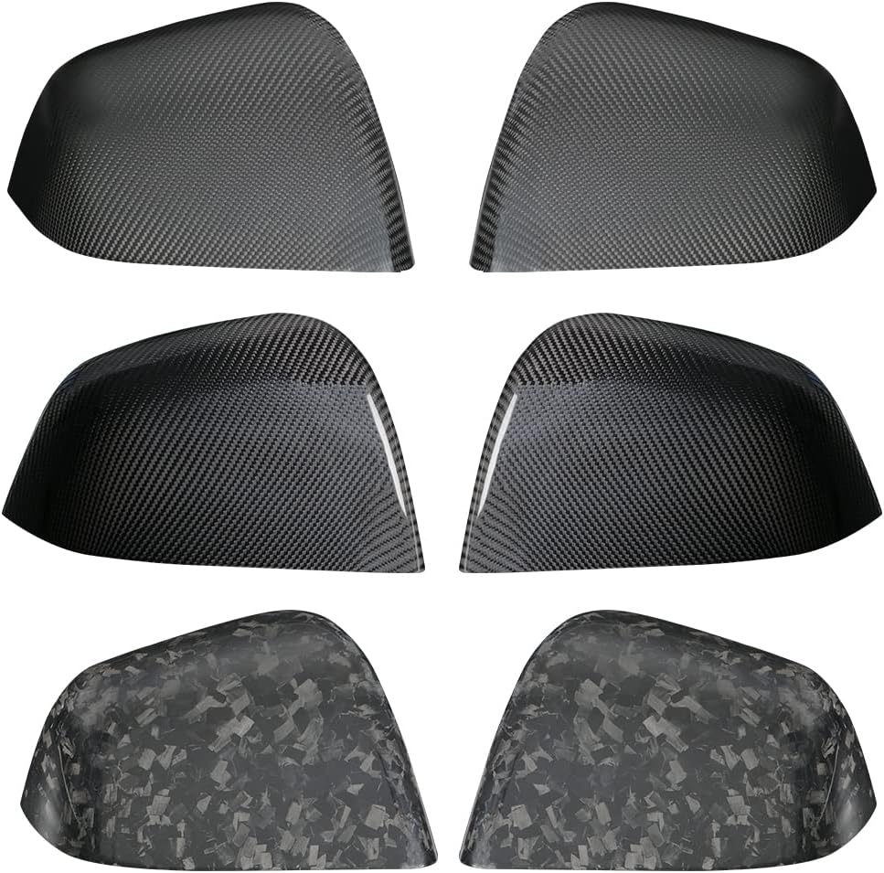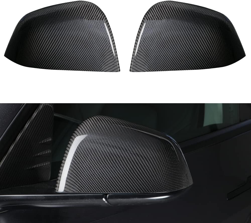 JSWAN Carbon Fiber Door Mirror Covers Side Mirror Rearview Cover Caps Rearview Replacement For Tesla Model Y Door Rearview Mirror Cover Cap Exterior Protect Accessories (Matte Black style)