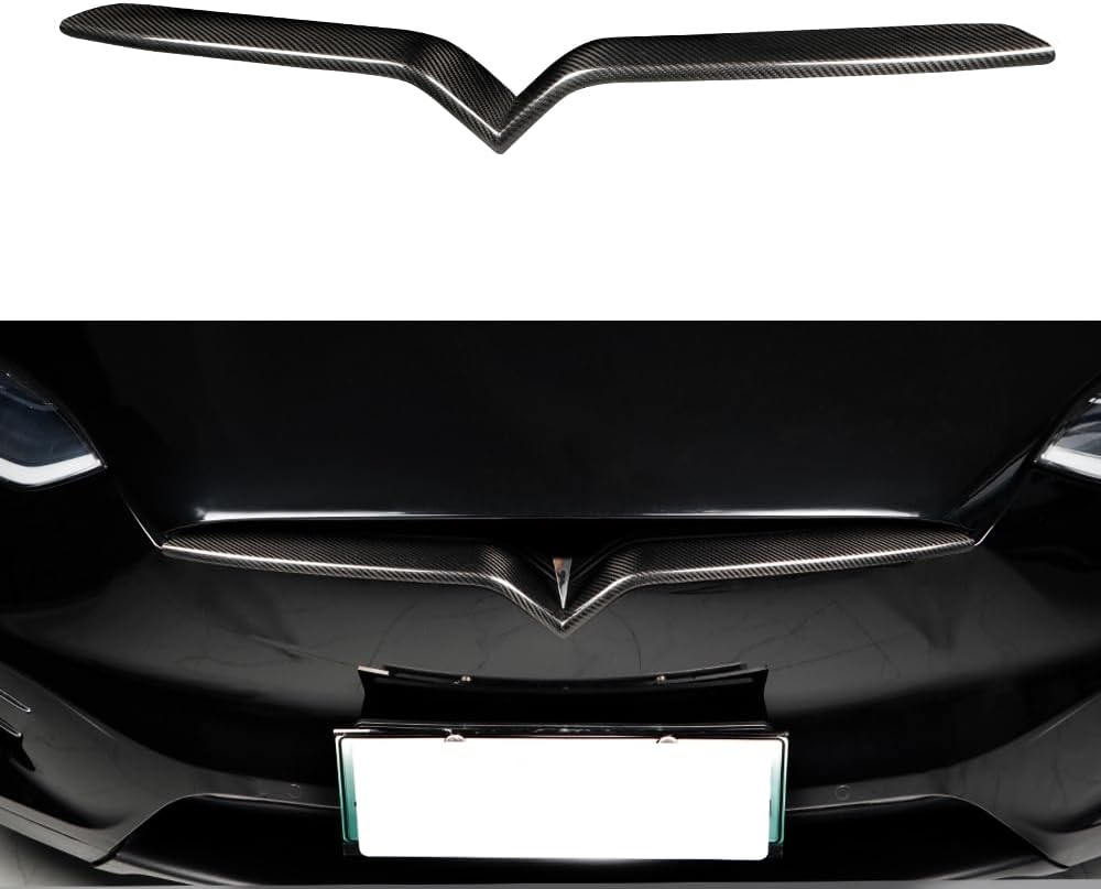JSWAN Carbon Fiber Front Center Mesh Grille Grill Cover for Tesla Model X (2019-2022) Front Bumper Lip Splitter Front Grille Insert Trim, Car Body Spoiler Splitter Kit (Matte black)
