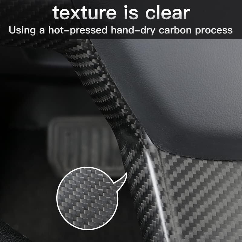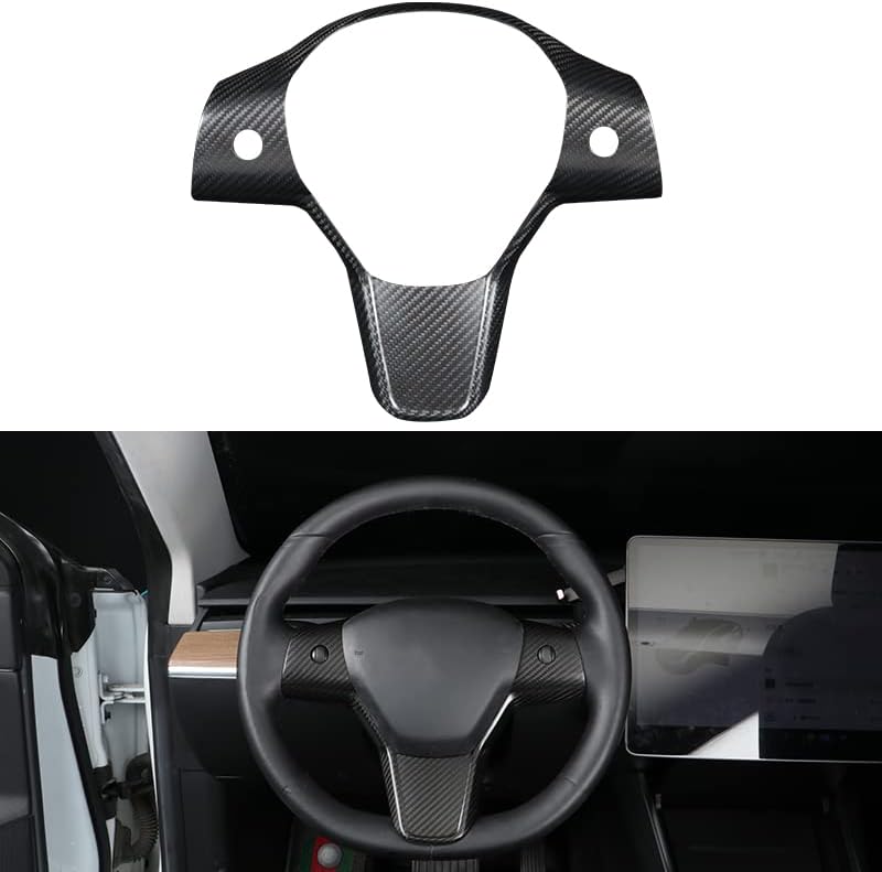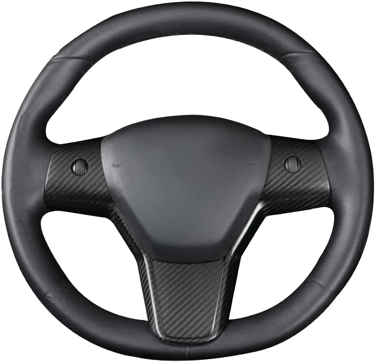 JSWAN Carbon Fiber Steering Wheel Cover for Tesla Model 3 Model Y Interior Wrap Steering Wheel Trim Cover Frame Decorative Sticker Interior Accessories Parts (Matte Black)