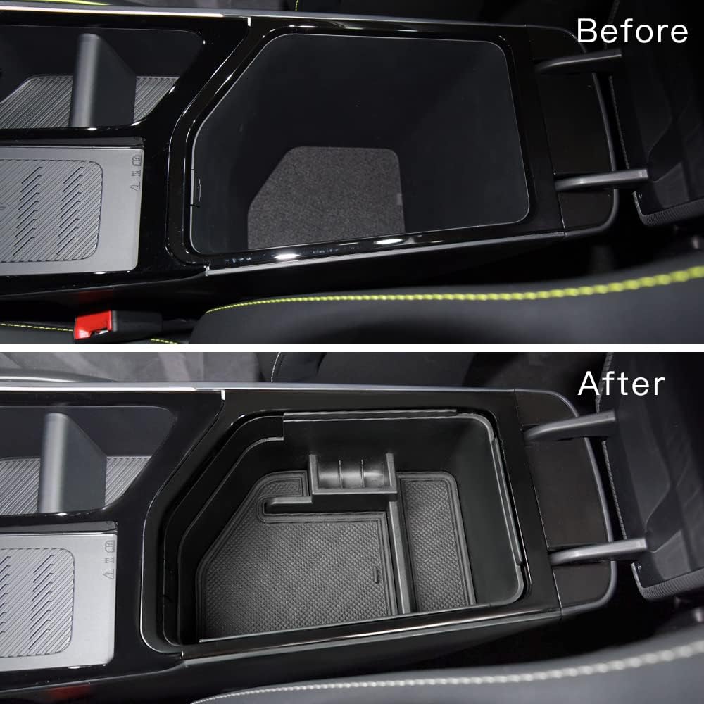 This center console organizer would be a great help to make everything organized, it classify the little stuffs on the tray and leaves plenty of room beneath for storage of big things.Keeps your armrest storage clean and tidy. High-grade Lightweight ABS Plastic center console armrest tray, solid and durable. Premium rubber mats, Non-toxic and odourless, can prevents items from sliding and rattling in tray. Easy and quick installation, It slips in and remove out easily, no modification is required.