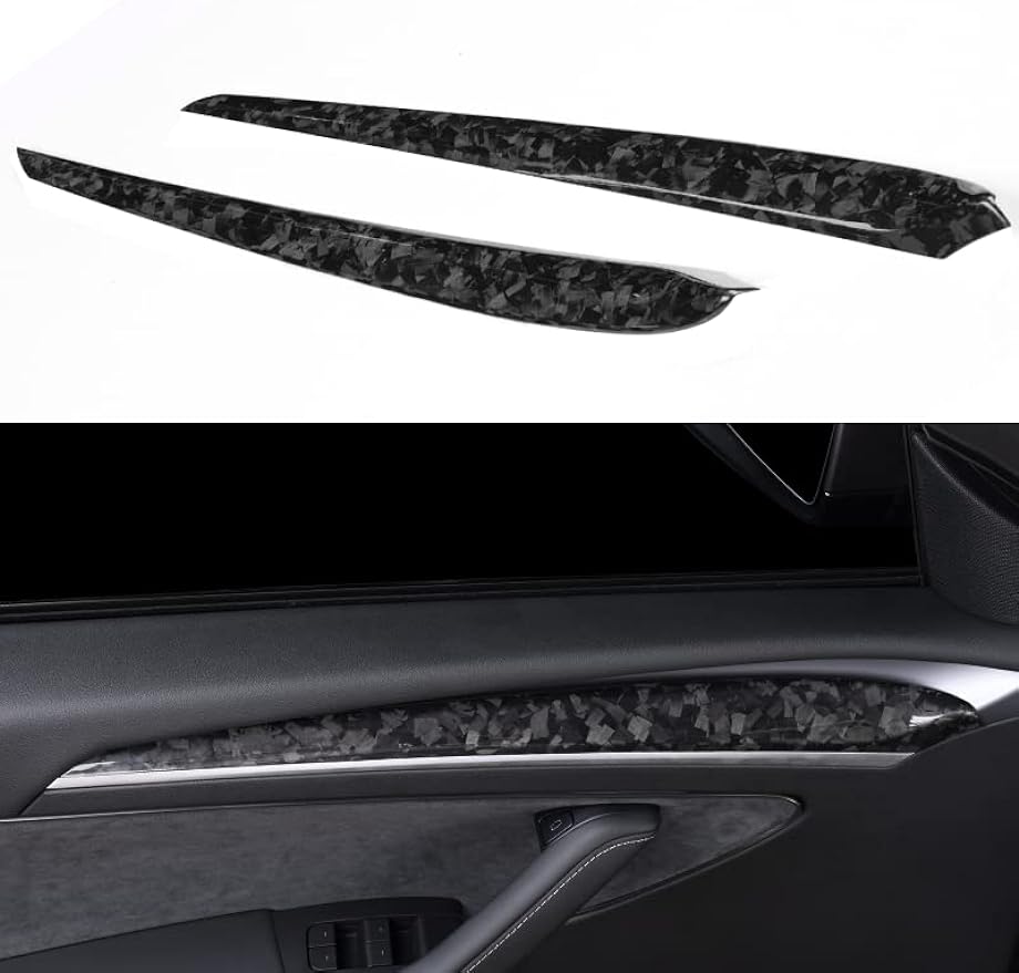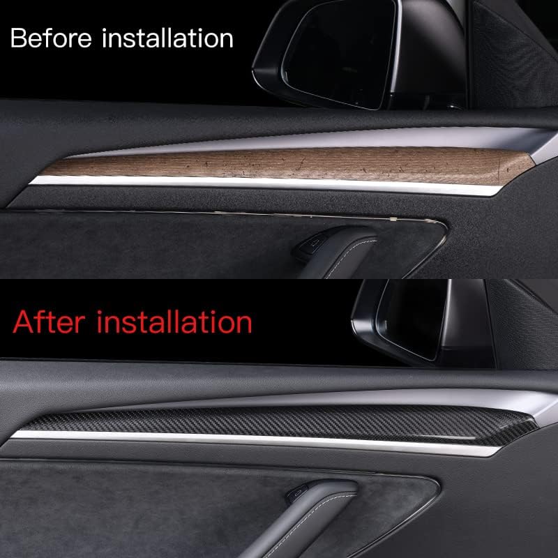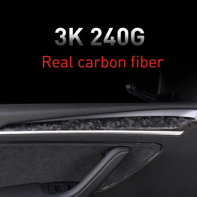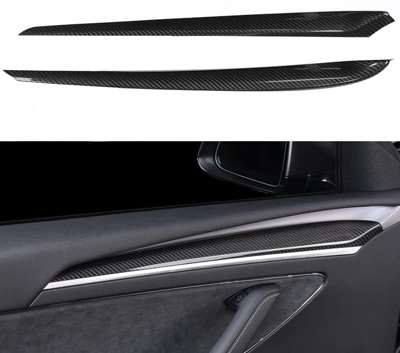 JSWAN Dry Carbon Fiber Front Door Inner Armrest Panel Cover Trim Interior Decoration Accessories for Tesla Model 3 Model Y (2021-2023)