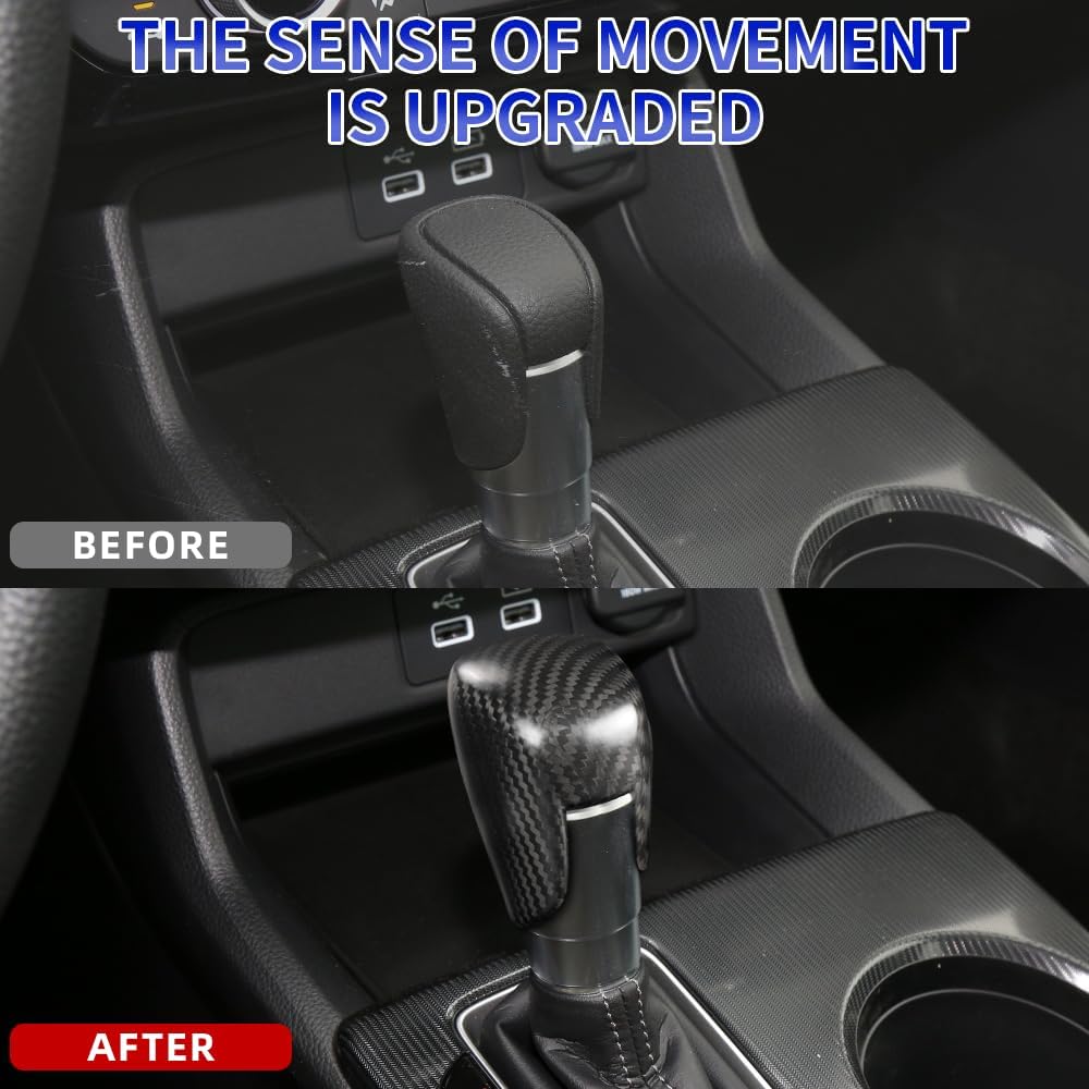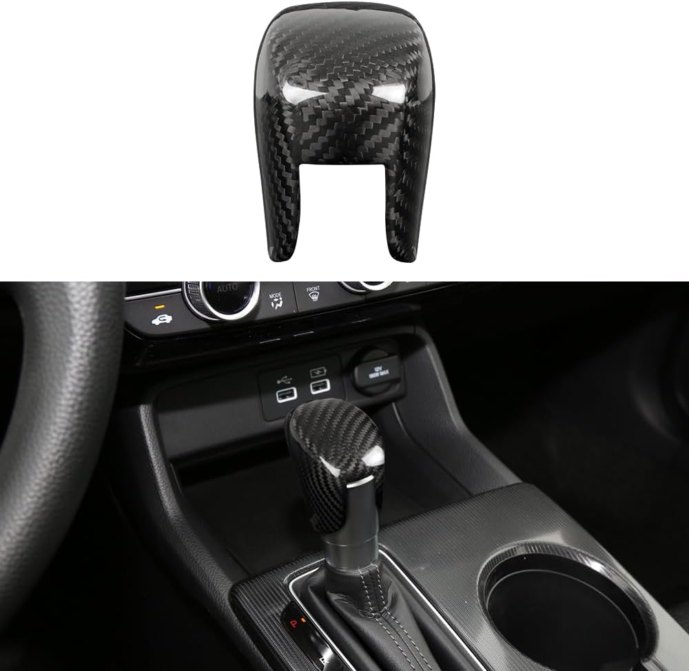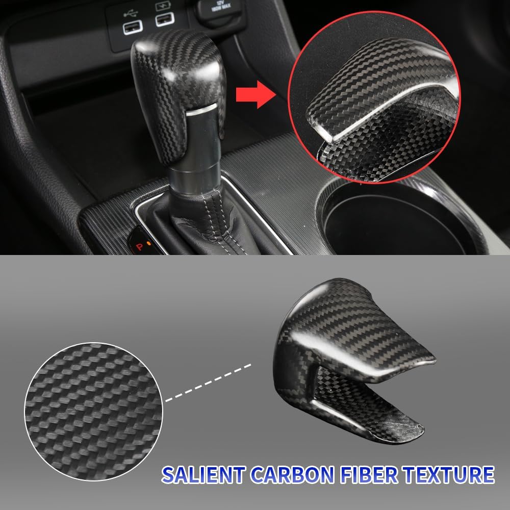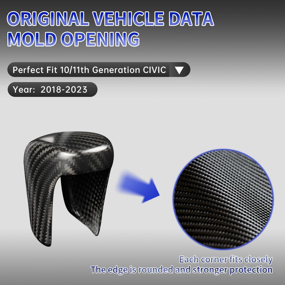 JSWAN Real Carbon Fiber Gear Shift Knob Cover Fit for 10th / 11th Gen Civic (2018-2024) Shifter Trim Cap Protector Automatic Transmission CVT Boots Change Lever Decoration (Matte Black)