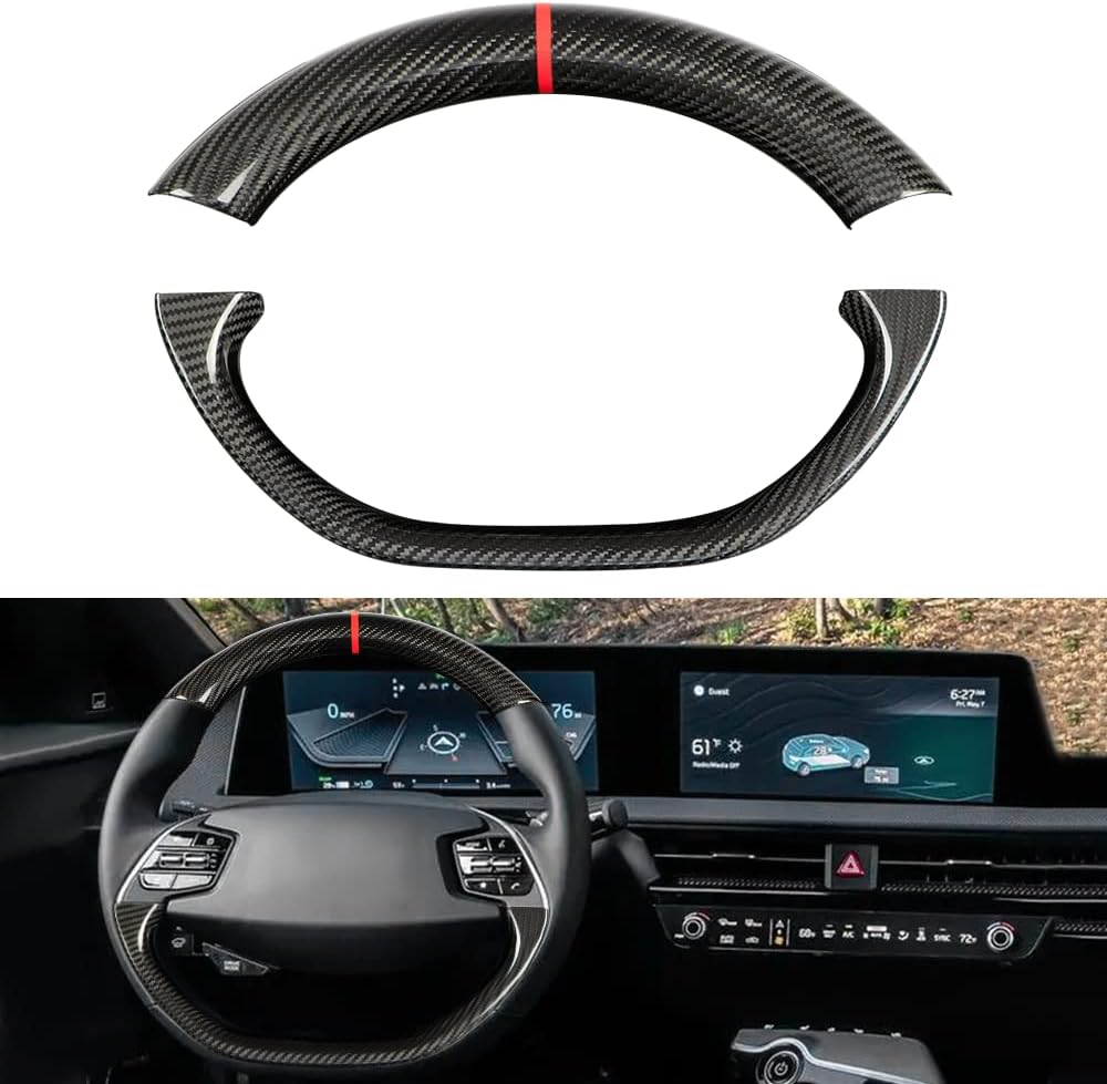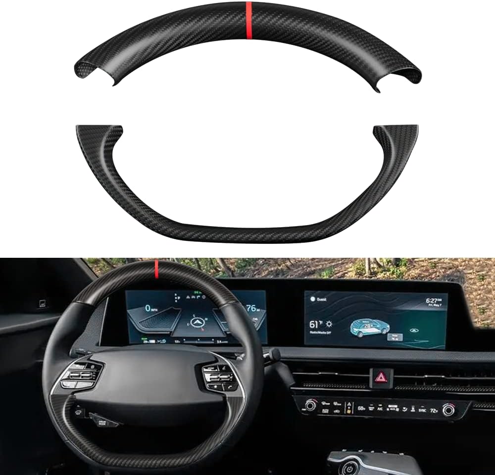 ️Advantage: Providing a sleek and sporty look to your steering wheel of Kia EV6. The real carbon fiber material and custom fit of this Carbon fiber steering wheel cover adds a luxurious and high-performance touch to your steering wheel, enhancing its overall aesthetics. Simultaneously avoid scratches, scuffs and wear.