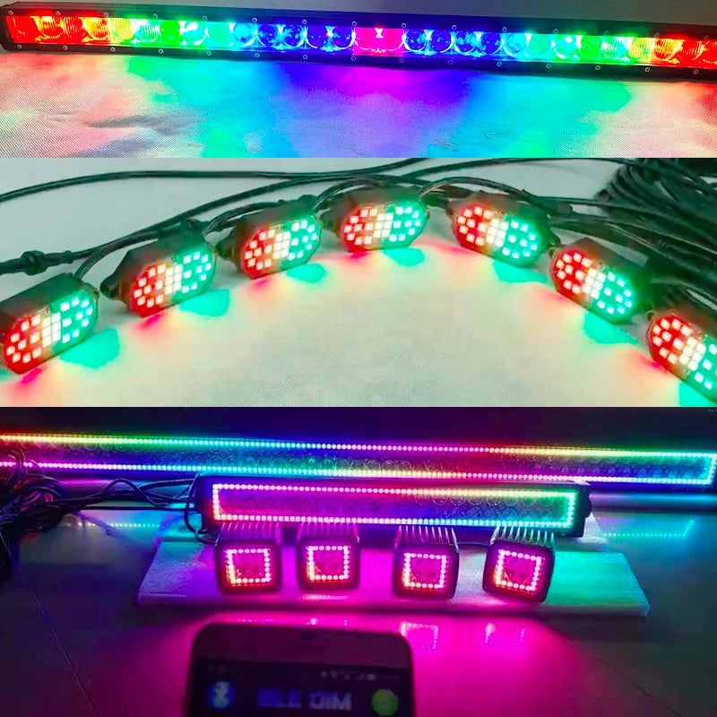 New Chasing Led Rock Light Music App Control RGB Led Light Bar Double Single Row Off Road Light