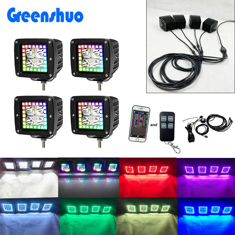 Pack of 4 Strobe Work Light Cube Rgb Chasing Led Pods for Jeep Offroad Truck 4x4
