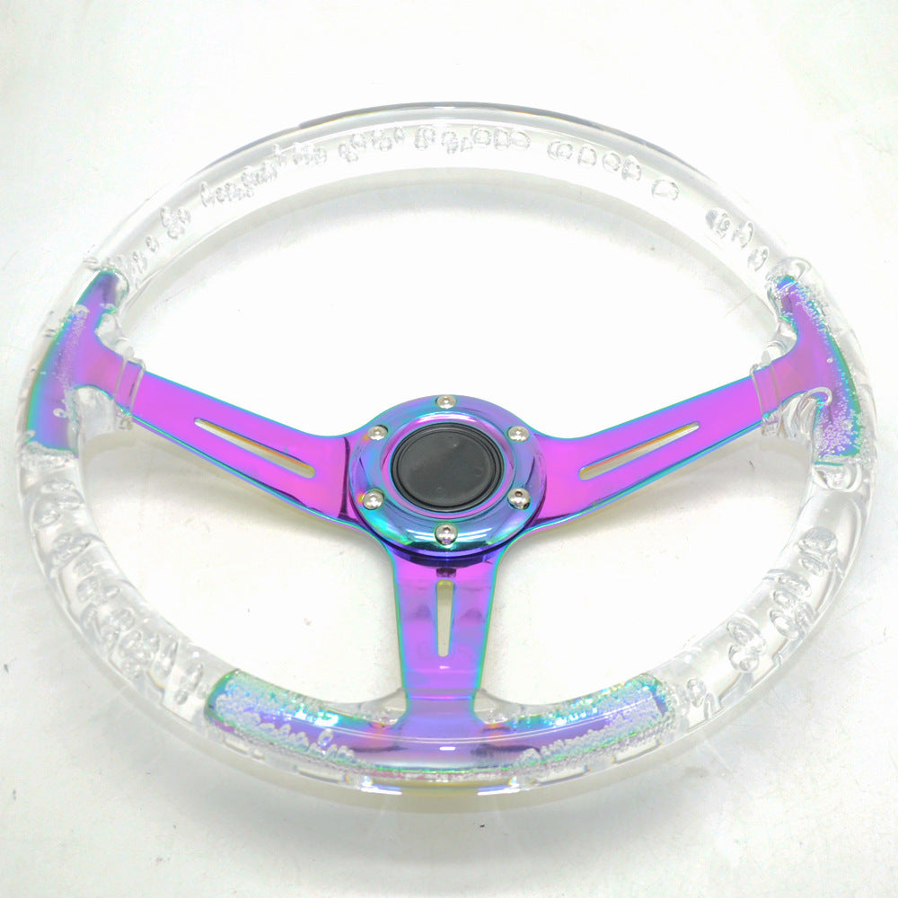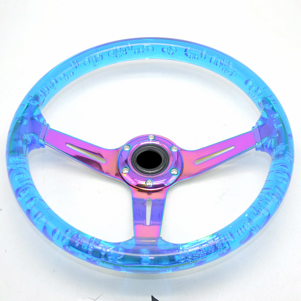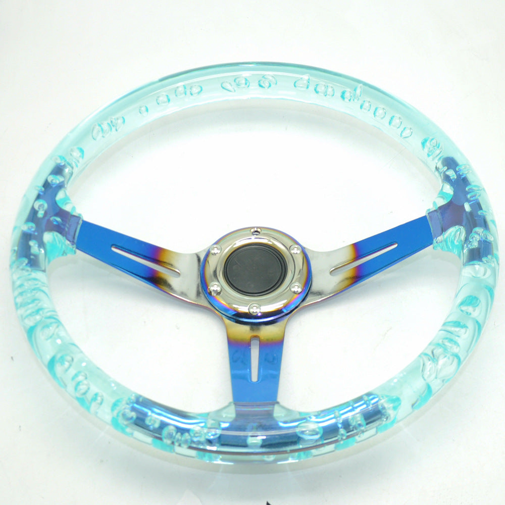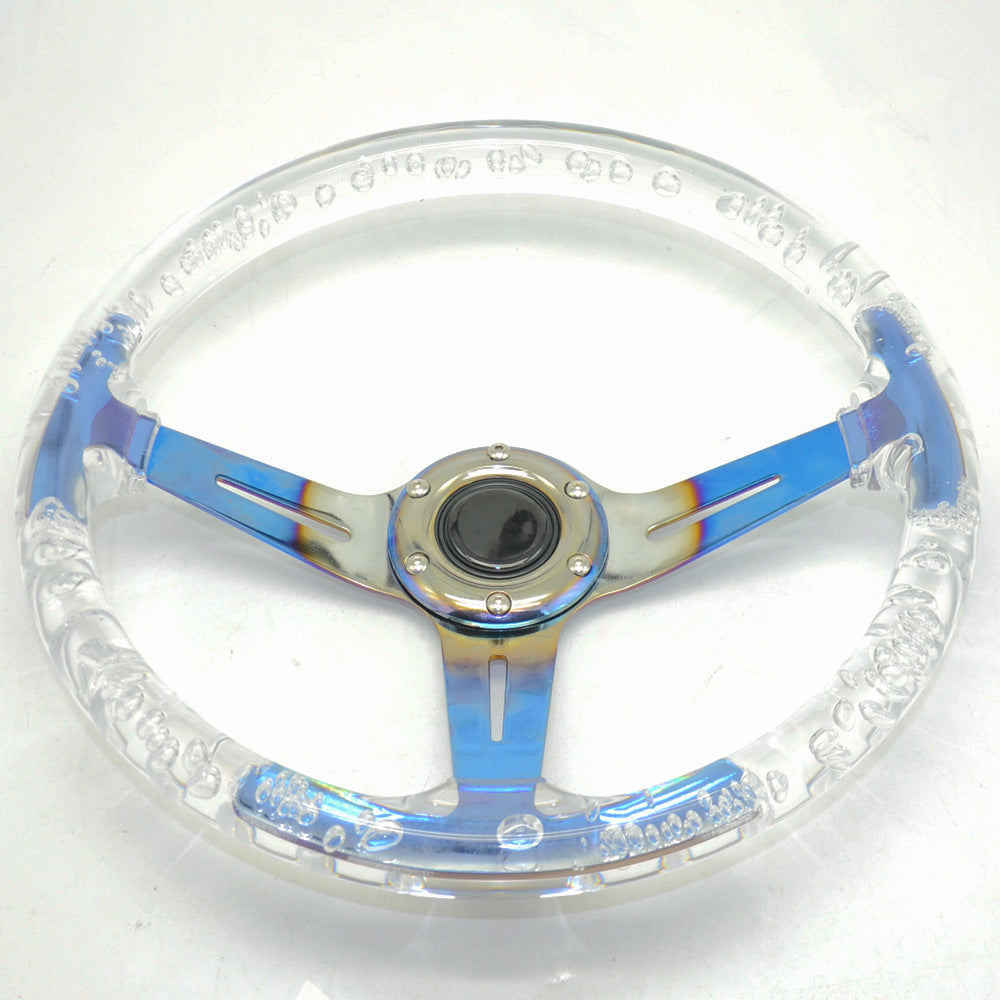 Racing Acrylic Steering Wheel – 350MM 14 Inch Modified Car Competition Transparent Bubble Blue Baked Chrome Color Spokes – One Piece