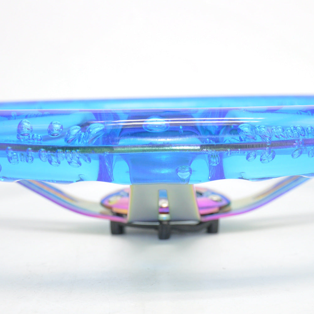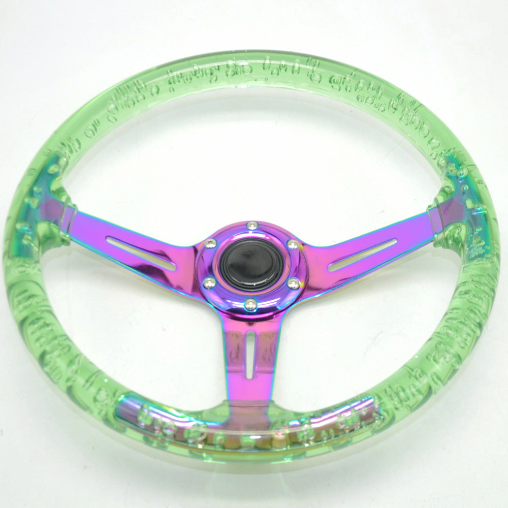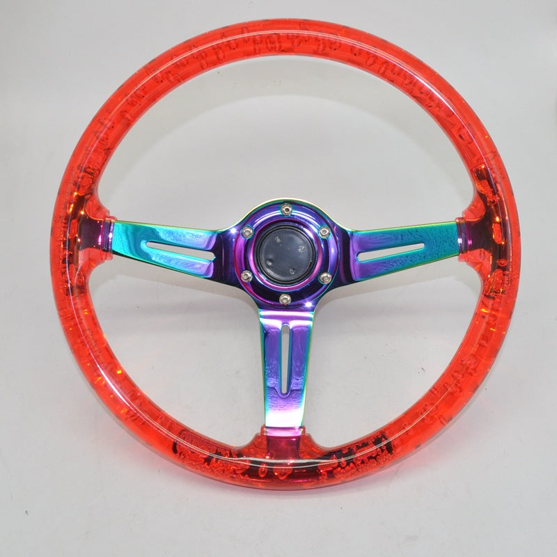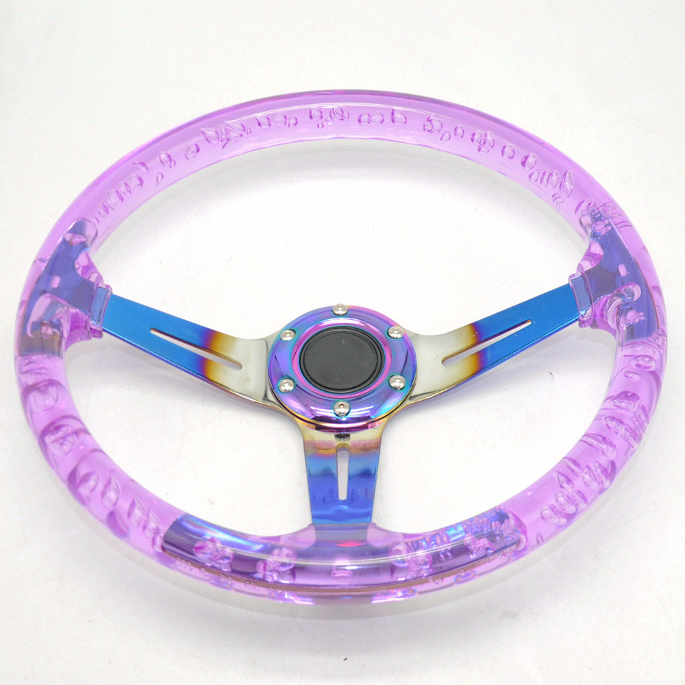 Racing Acrylic Steering Wheel – 350MM 14 Inch Modified Car Competition Transparent Bubble Blue Baked Chrome Color Spokes – One Piece