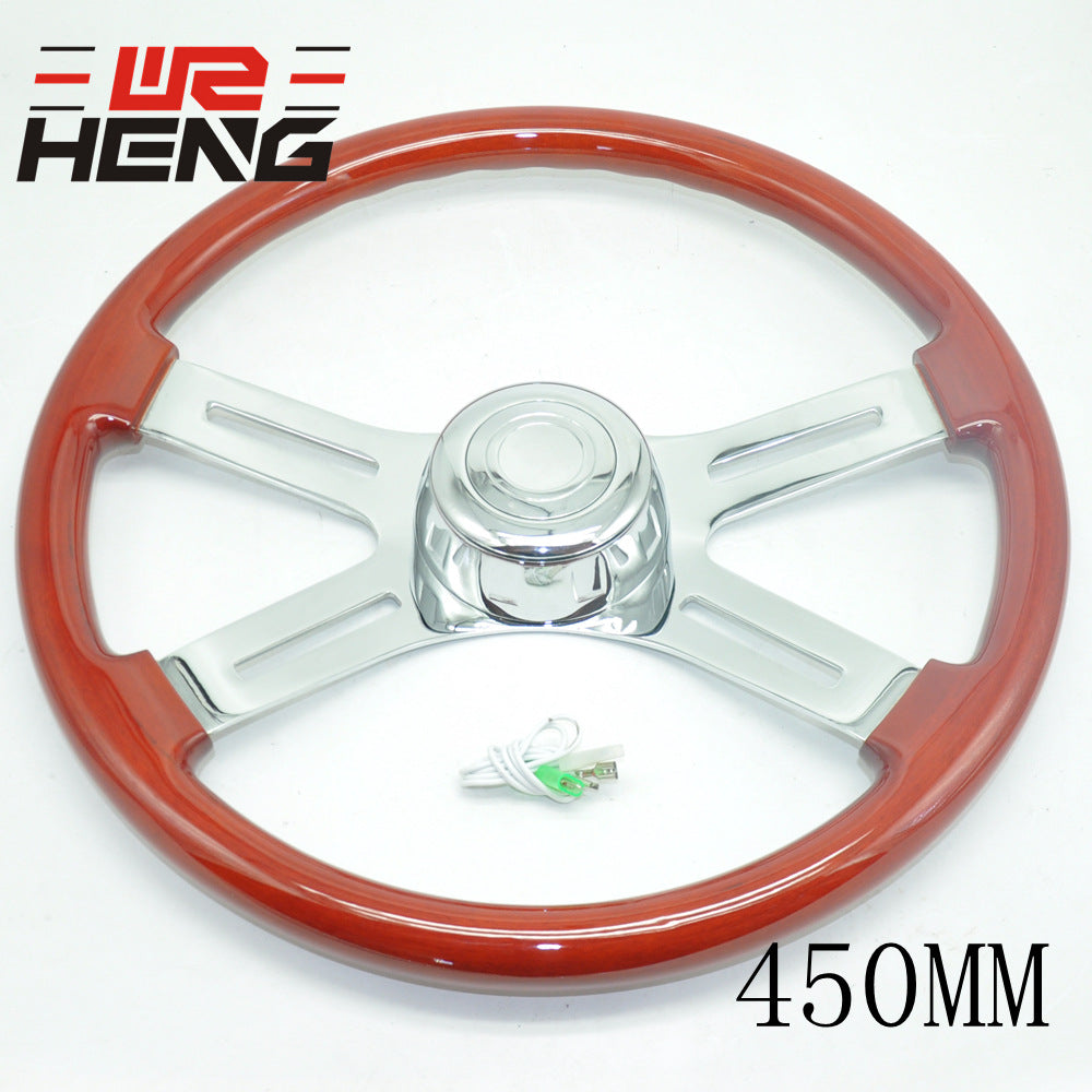 Truck Steering Wheel – Classic Red Brown Stainless Steel Bright Spokes Bright Plated Peach Wood 450MM 18 Inch