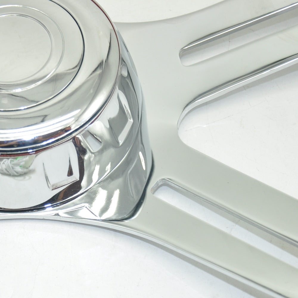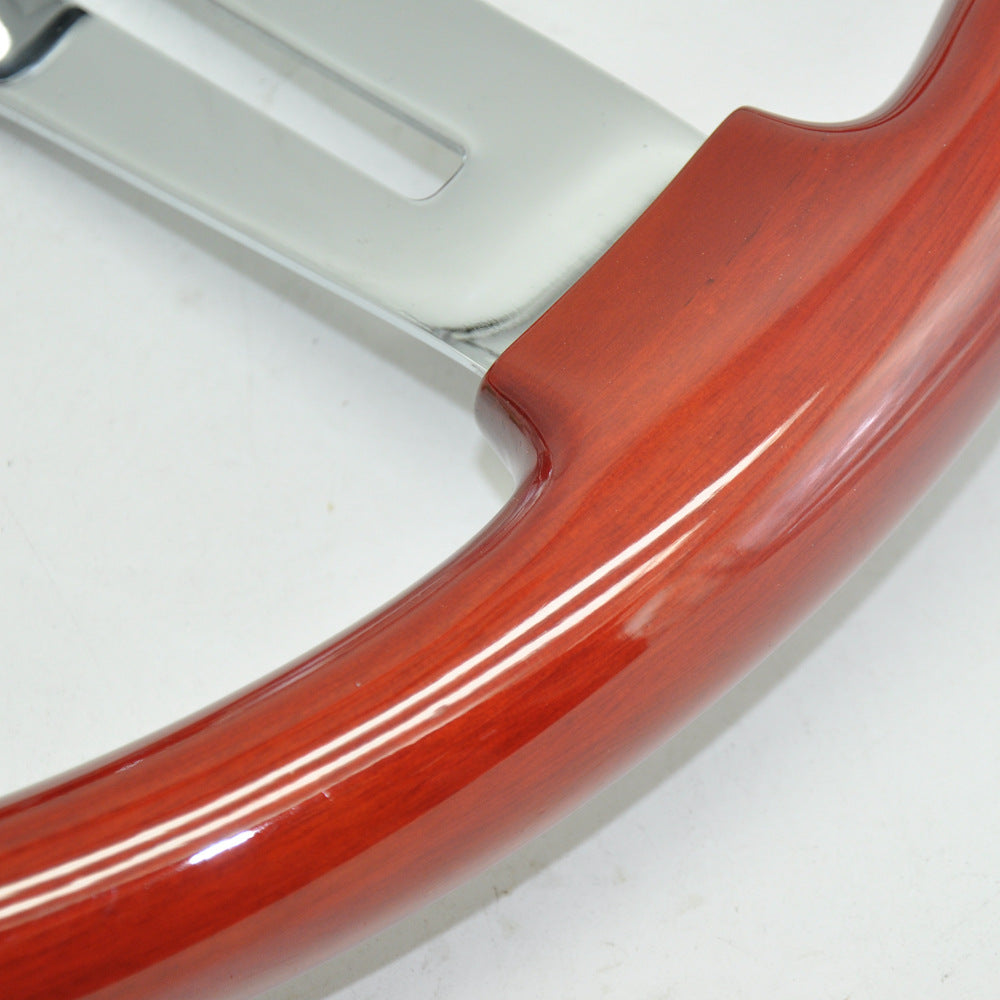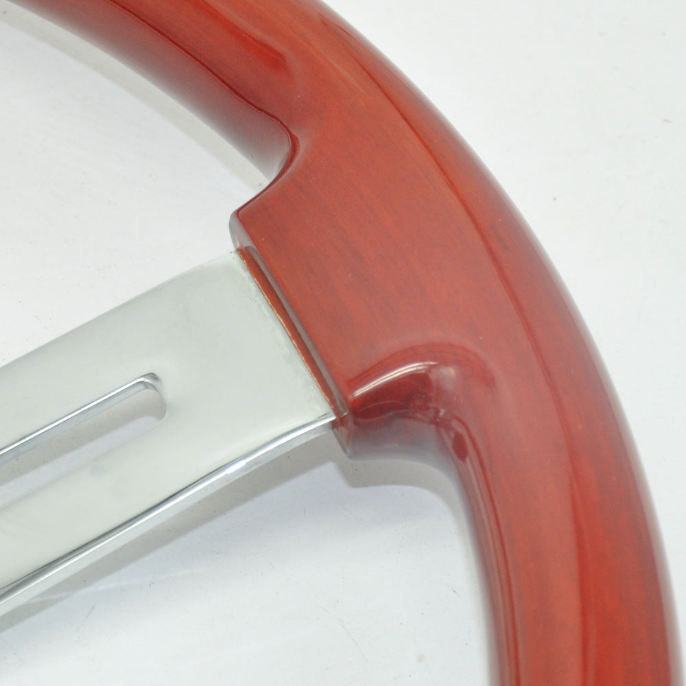 Wood Steering Wheel – Stainless Steel Spokes, Bright Plated, Red Brown, with Horn Button, Drop Shipping Available