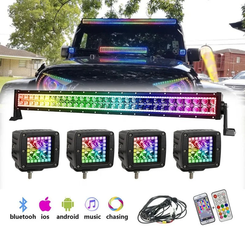 Wholesale Set 12v RGB Chasing LED Light Bar and RGB Work Light Led Pod Bluetooth APP Control for Truck Jeep 4×4