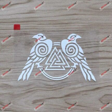 5” White Huginn and Muninn Twin Ravens Valknut Decal Sticker Vinyl Norse Odin